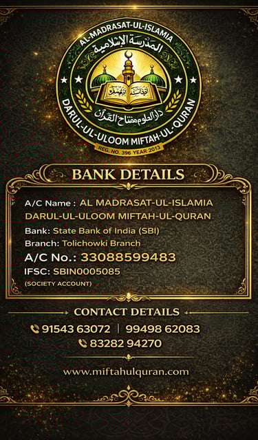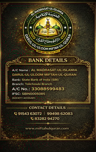 A/c Name : Al Madrasat-Ul-Islamia Darul-Ul-Uloom Miftah-Ul-Quran